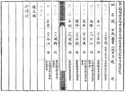 李正恩在国立成都高等师范学校第二类预科生生物学系名册中