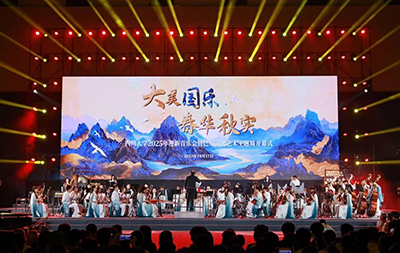 四川大学学生民乐团、四川大学学生合唱团、筝渡室内乐团、纸弦乐队等校内外艺术团队与非遗表演者同台演绎,在音乐作品演奏之外,汇聚川剧表演、变脸吐火、蜀派古琴、功夫茶等巴蜀地区代表性非物质文化遗产展演,让巴蜀古韵与时代新声交织回响。